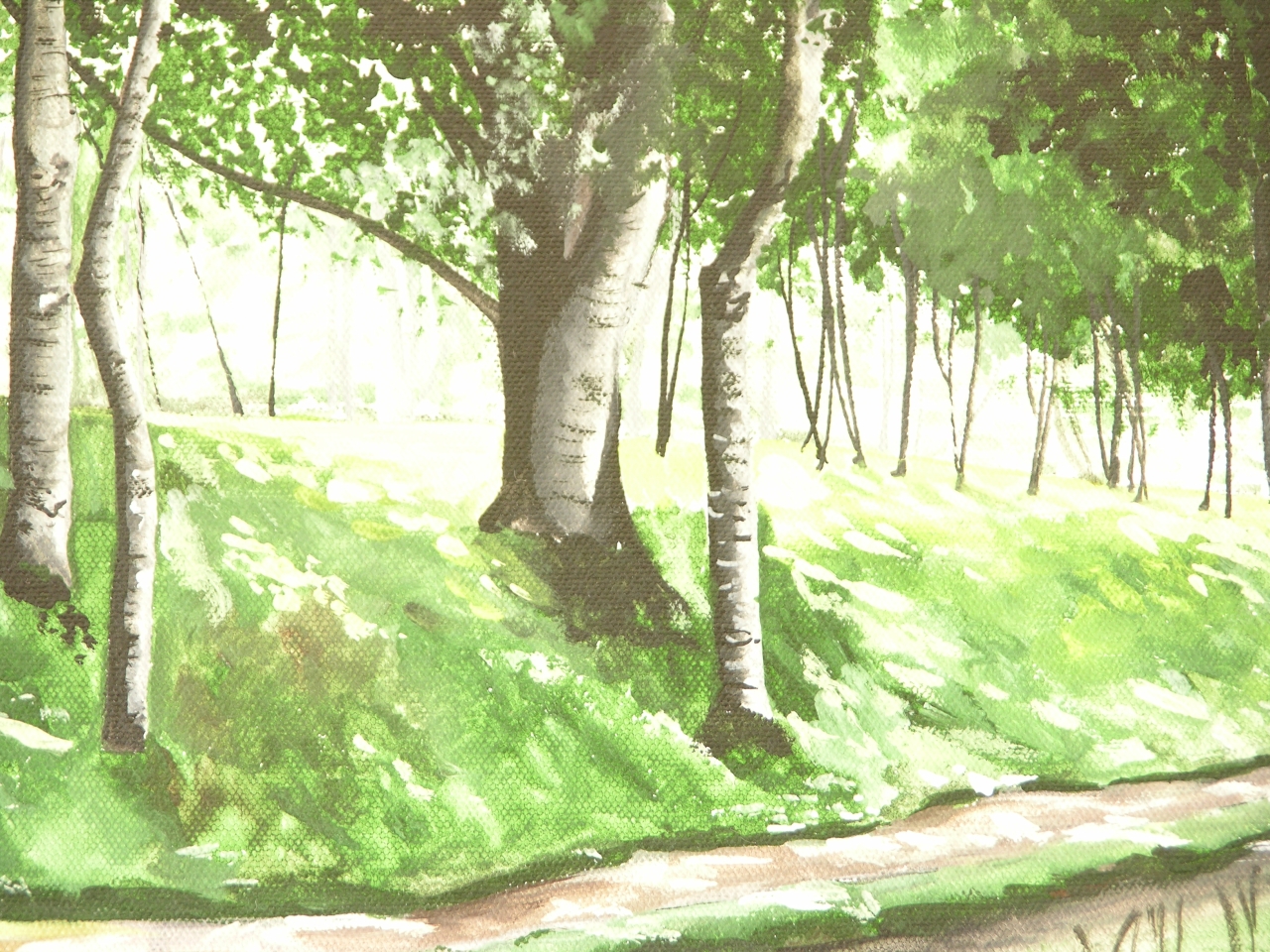 | La quasi maniacale precisione per i particolari, facilmente riscontrabile nel tronco della Betulla ( Vedi dettaglio 1) , o dal polline adagiato sull’acqua lungo la sponda ( Vedi dettaglio 3 ) , consentono all’osservatore di cogliere appieno la bellezza di questa oasi verde. | ||