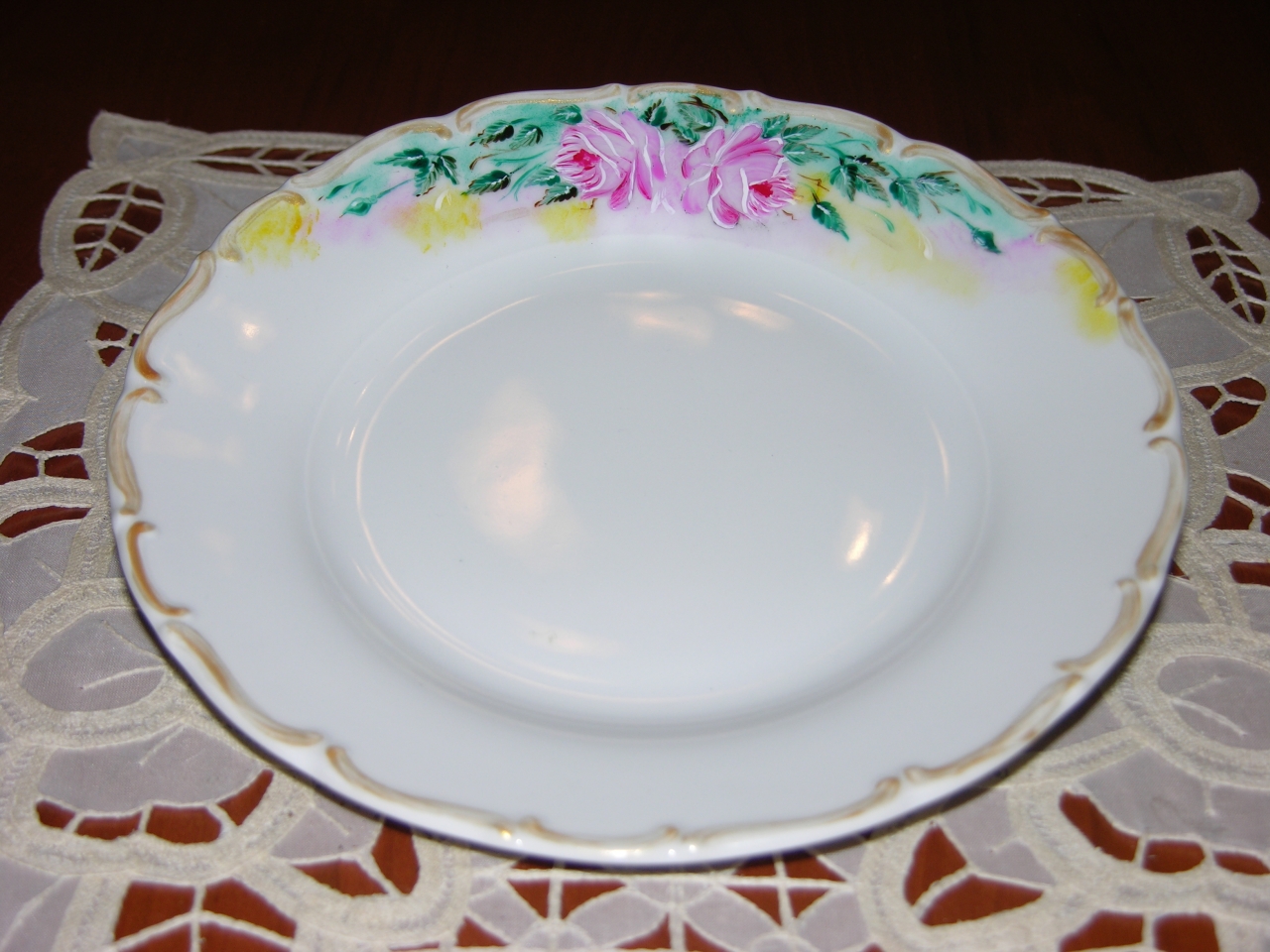 | Vassoio di porcellana fina, splendidamente decorato da Rose ed arricchito da un sottofondo di colori tono su tono rosa giallo e verde.